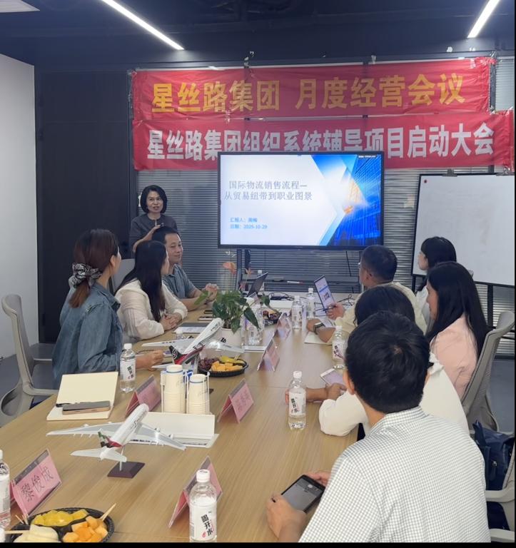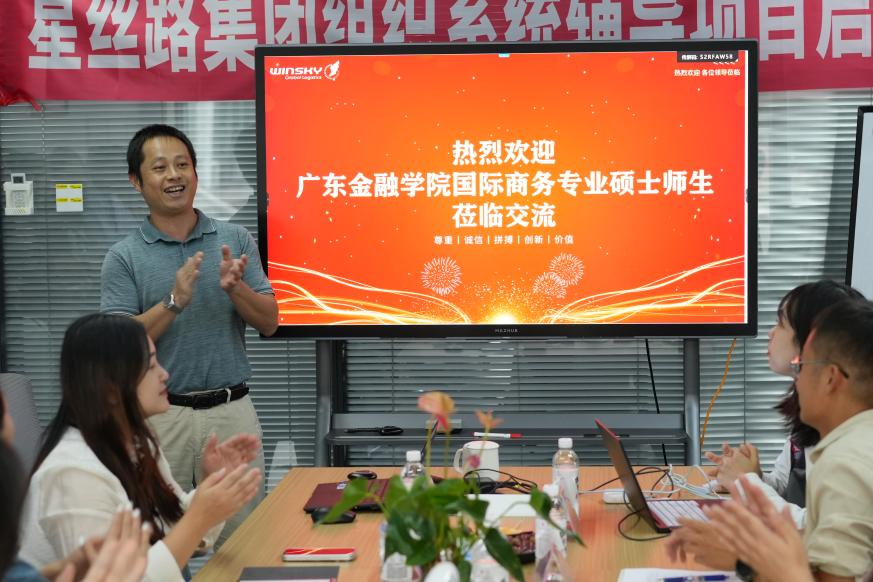 星丝路集团人事行政部负责人陈振亮先生对师生一行表示热烈欢迎,并详细介绍了企业发展历程、组织架构及全球布局。星丝路集团成立于2004年,是一家集国际物流、跨境电商、海外仓储与供应链管理为一体的综合型外贸服务企业。公司总部位于广州,在全国设有13个分支机构,海外设点覆盖非洲、中东及东南亚多个国家,客户包括中国中铁、小米、创维等知名企业,连续多年荣获“大湾区航空运输十大物流企业”称号。凭借稳定的网络与服务体系,星丝路集团已成为中国企业“走出去”的重要支撑平台。