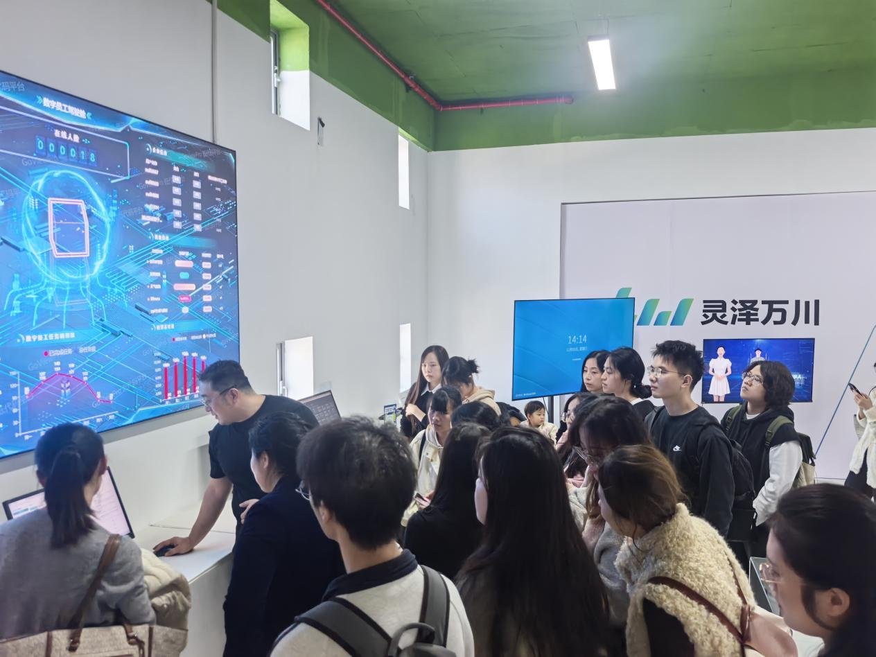首先,灵泽万川的总经理李琢介绍了企业的基本概况。“灵泽万川”以AI产品研发为核心,全公司仅设13名员工,除创始人外均为研发人员,不设传统销售与行政岗位,形成了一支高度聚焦的“零销售团队”。面对AI行业创业艰难、存活率不足2%的挑战,企业通过持续投入,已成功构建起从智能硬件到软件平台的产品生态体系。在产品展示环节,李总带领师生重点考察了企业自主研发的智能终端设备与数字员工平台。智能终端支持本地化运行大模型,具有突出的性价比优势;数字员工平台则通过知识库配置与技能模块调用,能够自主完成专项工作任务。李总结合具体案例说明,某企业通过部署跟单数字员工,实现了“2人+AI”替代原有12人工作量的显著成效,充分展示了人工智能技术在提升企业运营效率方面的实际价值。