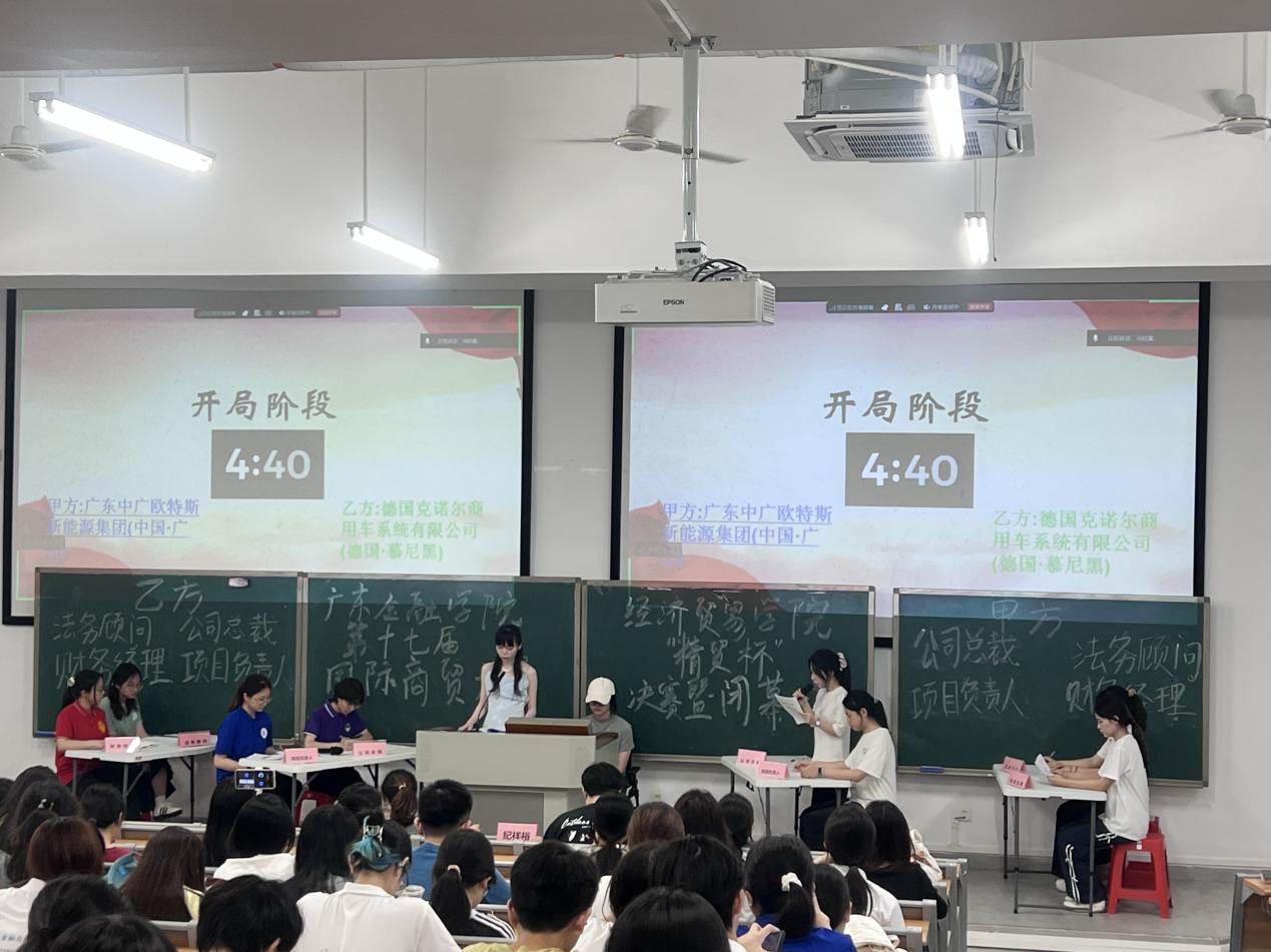 本届赛事自启动以来,获得全校学子积极响应,共有超过1100名学生报名参赛。经过严格初赛筛选,6支队伍、24位选手晋级决赛。决赛采用高仿真商务谈判赛制,每支队伍的四名成员分别承担项目负责人、公司总裁、财务经理和法务顾问角色,围绕数字经济、绿色能源、高端装备国际采购三大前沿领域,开展三轮真实商业案例谈判。