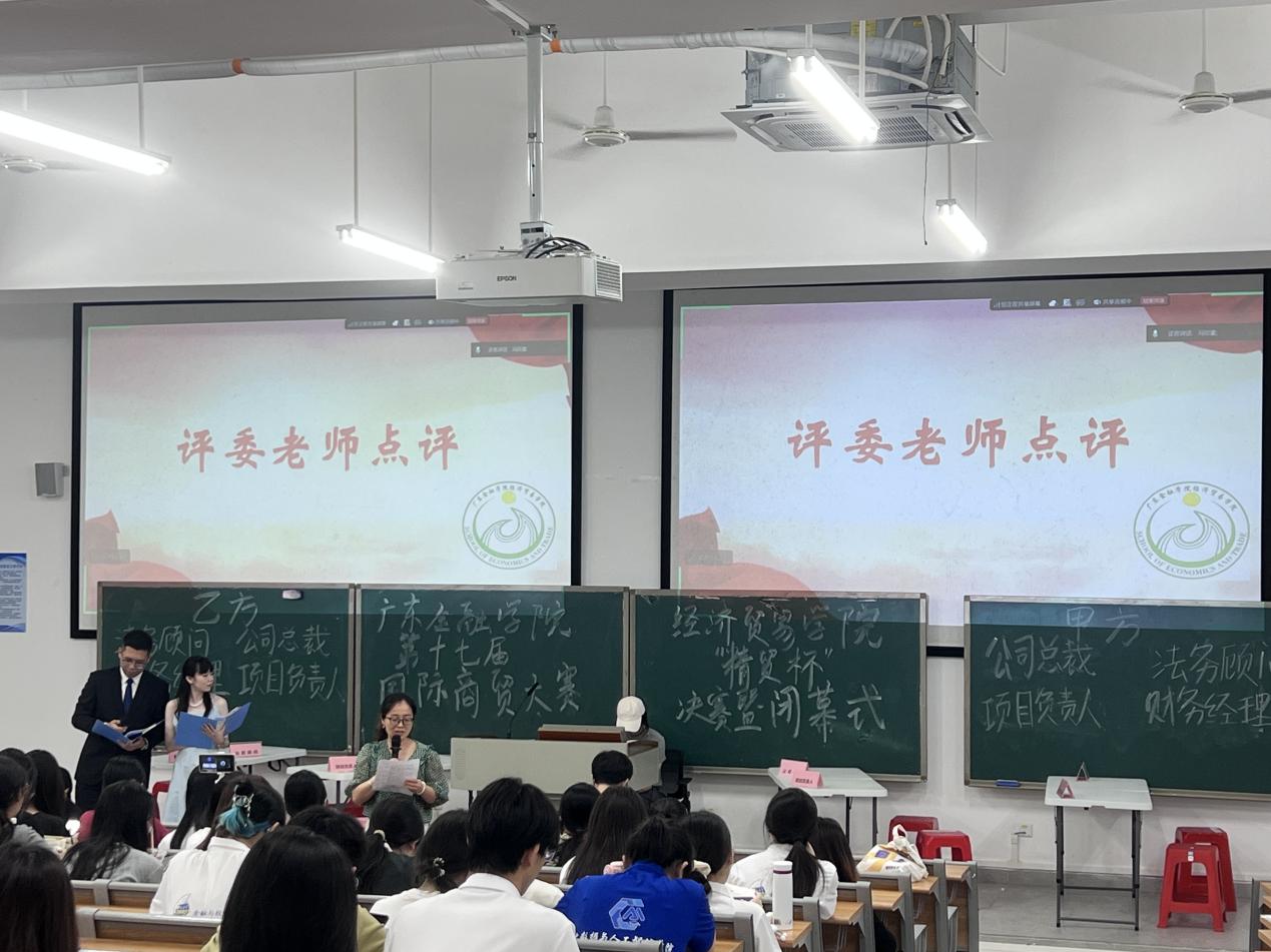 4月13日晚,广东金融学院第十七届“精贸杯”国际商贸大赛决赛在清远校区北阶102圆满落幕。本次活动由经济贸易学院承办,旨在推动国际商贸理论与实践深度融合。经济贸易学院党委书记庞福海、副书记王婷、学生会指导老师李先启、评委曹芳、纪祥裕老师以及130余名学生代表共同见证了这场高水平的商贸实战竞赛。